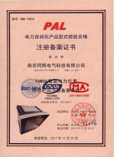 電力自動化產(chǎn)品型式檢驗合格注冊備案證書